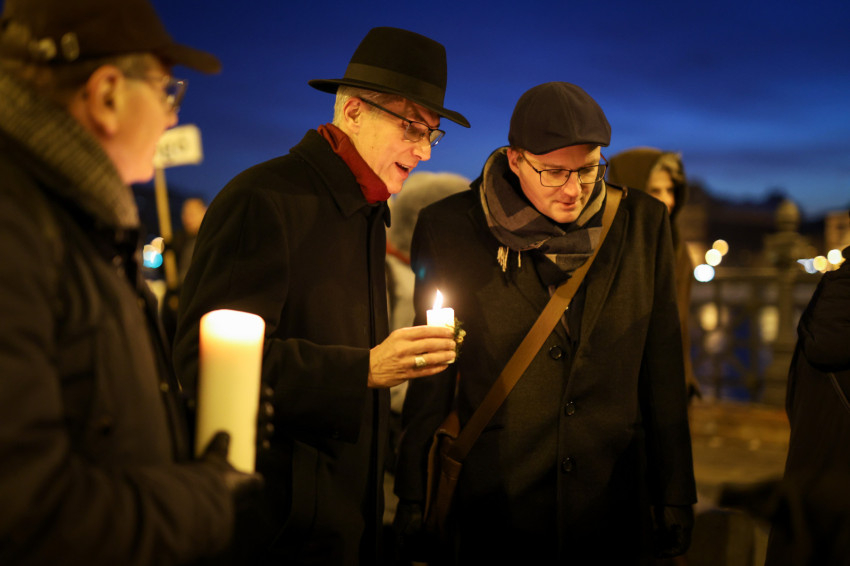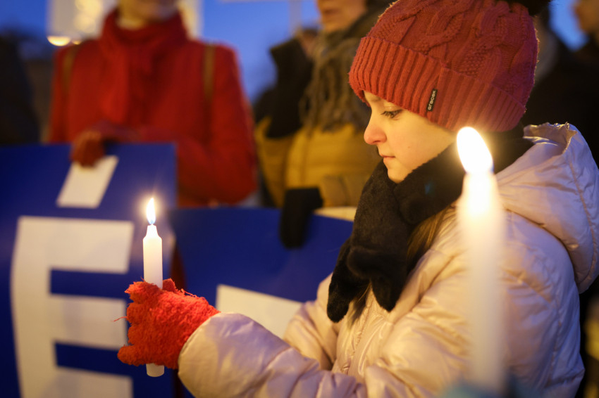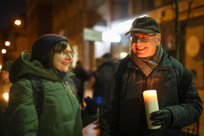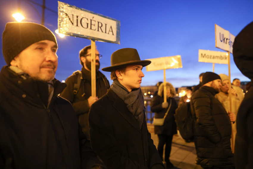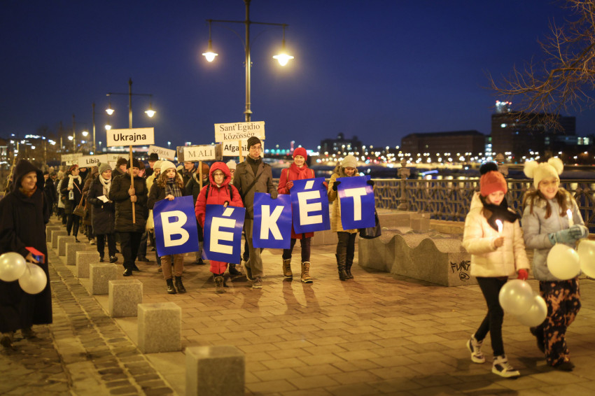 A reményteljes szavak után fáklyákkal és magasba emelt, a háborúban szenvedő országok nevét hirdető táblákkal indultak el a résztvevők az Egyetemi templom felé, ahol ökumenikus, vallásközi imádság kezdődött.