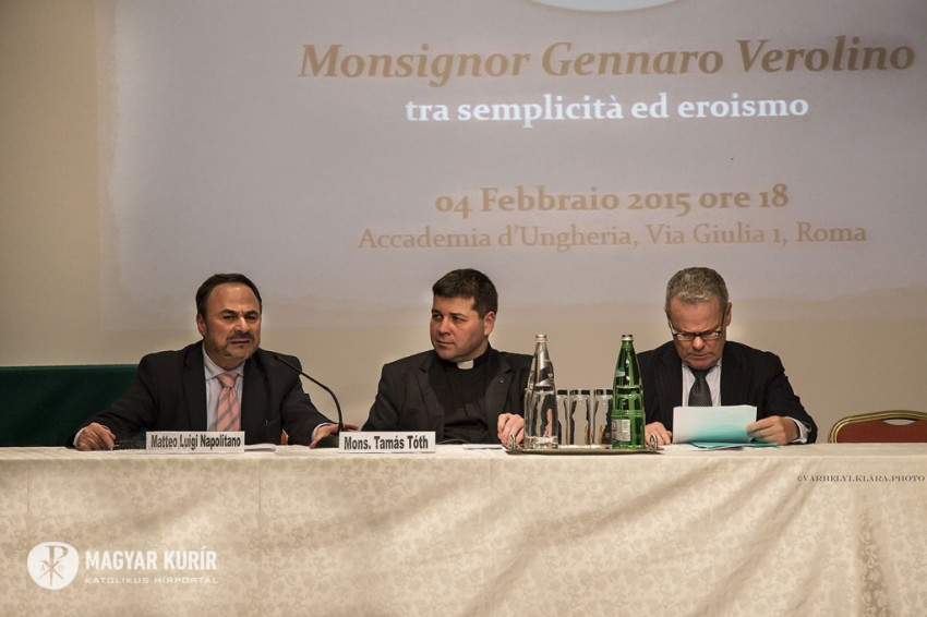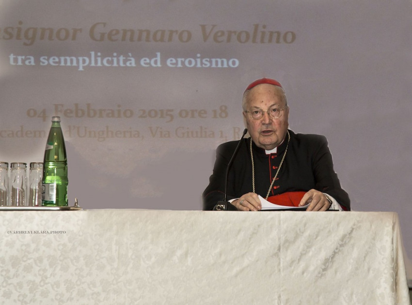 Tóth Tamás, a Pápai Magyar Intézet rektora felolvasta Antonio Di Donna, Acerra püspöke levelét. A főpásztor az acerrai közösség nevében is háláját fejezte ki a zsidómentő érsekről való megemlékezésért. Az emberiség ragyogó példája Verolino érsek alakja – írta Di Donna püspök –, aki a szenvedőkben felismerte Krisztus arcát, és akire úgy tekinthetünk, mint a keresztény erény példájára.