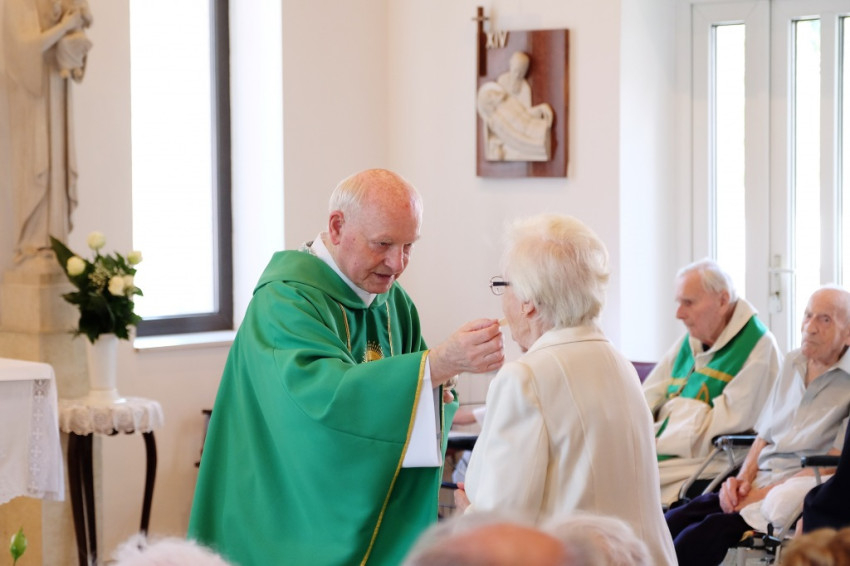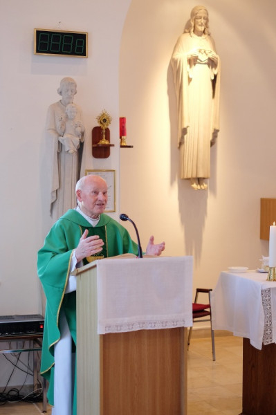 Mindannyian embernek születünk, de aztán emberré is kell válnunk, erre hív bennünket az Isten. Jézus azért jött, hogy összegyűjtse Isten népét, szeretetközpontú közösséget hozzon létre. A meg- és a világból kimentettek közösségének tagjai vagyunk, akik összetartoznak egymással. Egymásból élők, egymás adósai. Egy szűk közösségben ennek különösen nagy a jelentősége. Azokra, akik az otthonban élnek, és azokra, akik a munkájukkal őket szolgálják, ez különösen is vonatkozik. A világban emberi igazságok harcolnak egymással, Istennek és az egyházi tanításnak pedig nem akarnak helyet adni. Más isteneknek hódolnak: a pénznek, a hatalomnak. Bennünket is fenyeget ez a gondolkodásmód. Be kell vallanunk, hogy keresztény jelenlétünk elég szegényes a világban. Magyarországon csak a megkereszteltek mintegy öt százaléka jár misére, míg például Srí Lankán a kilencven százalékuk! A fogyasztói társadalom szemlélete bennünket is be akar börtönözni. Életünk boldogsághiányos élet. Csak az boldog, aki jót tesz. Igazán emberré válni csak ezen az úton lehet. Arra figyeljünk, hogy a másiknak mire van szüksége. Mária mutatja nekünk az utat a hiteles keresztény élethez. Önmagunkkal tartozunk egymásnak.”