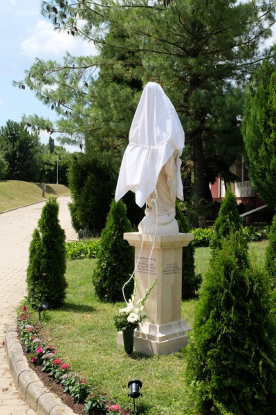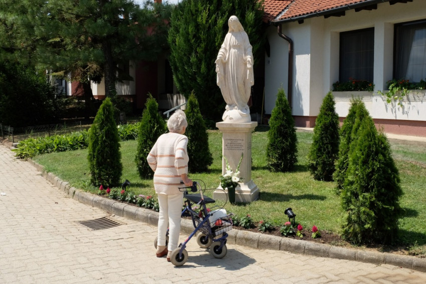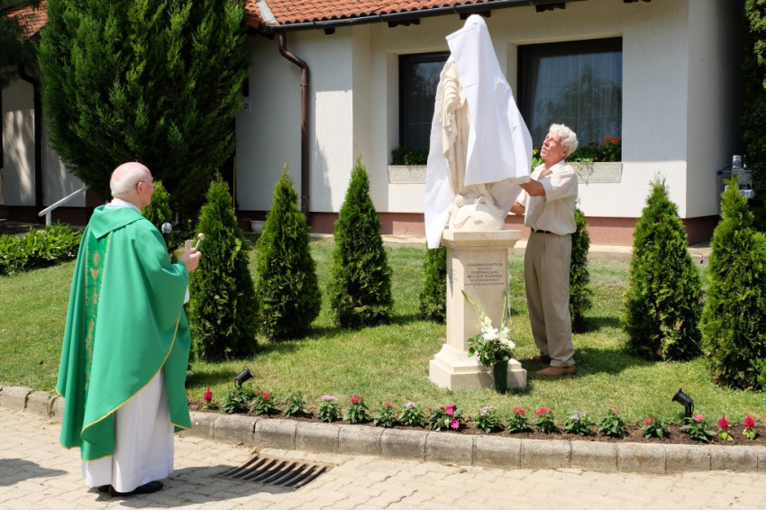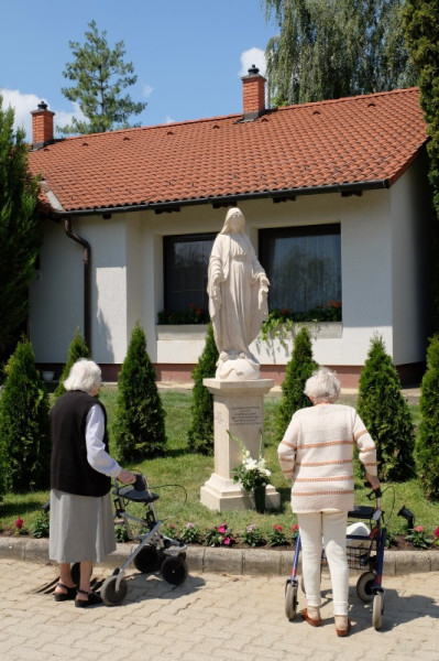 Mise után a kertbe megyünk, hogy a szobrot leleplezzék. Találjanak igazán egymásra az otthon lakói, és akik értük felelősek, imádkozza az atya, majd azért fohászkodik, hogy a Szűzanya példája mindig tudatosítsa számunkra: a cél az életünkben a másik ember; „csak” hozzá kell megérkeznünk ahhoz, hogy boldogok legyünk.