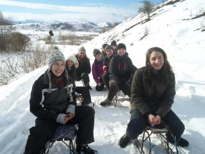 A fenti kép Csíkszentdomokos határában készült 2014 telén, és akik rajta vannak az a csíkszentdomokosi IFI csoport egy része és (jobbról a második) Bajkó Julianna Zsófia segítőnővér.