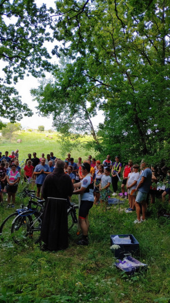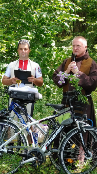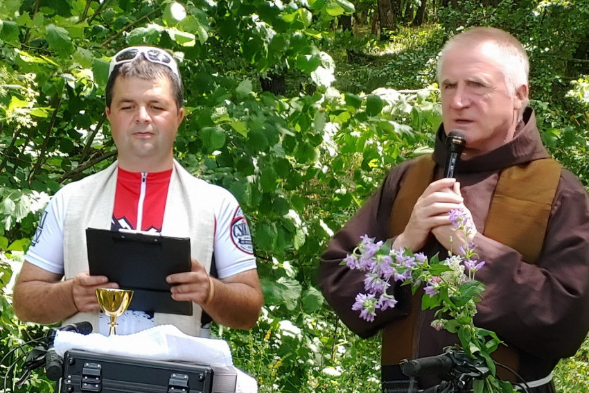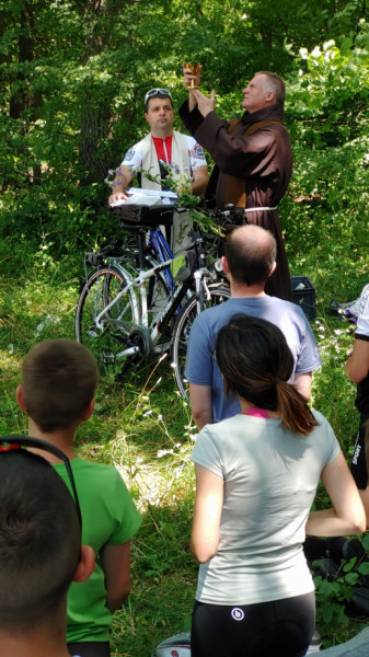 Jézus nevében indult útnak a csapat, bízva abban, hogy mindenki számára lelki megújulást hoznak a fizikai erőfeszítések. Csaba testvér kifejezte abbéli reményét is, hogy ez a misszió az útba eső települések számára is elviszi Jézus ígéretét. És maradt még egy tanulság a történetéből: amit ma megélhetsz, ne add oda semmiért senkinek, mert az csak így lesz a tiéd. A ferences biciklisták bemelegítettek tehát, és készülnek a pénteki megpróbáltatásra, mert nehéz terepviszonyok mellett fognak kerekezni 140 kilométert a tűző napon. Mindenki személyes felajánlással indul útnak. Imádkozzunk értük, hogy erőfeszítéseiket a Jóisten is megjutalmazza.