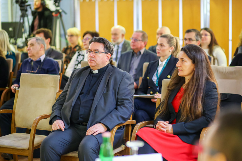 Vörös Tamás, a Veszprémi Főegyházmegye főépítésze részletesen szólt a beruházás szakmai kihívásairól, kiemelten is a Szent Mihály-főszékesegyház felújítása kapcsán felmerült problémákról és azok lehetséges megoldásairól.