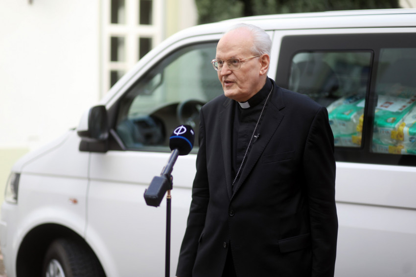 A budai várbeli prímási palota udvarán adta át Erdő Péter bíboros, prímás a Volkswagen mikrobusz kulcsait Écsy Gábornak, a Katolikus Karitász igazgatójának. Az élelmiszerrel teli jármű holnap indul Munkácsra, hogy az ott élők ellátását szolgálja.