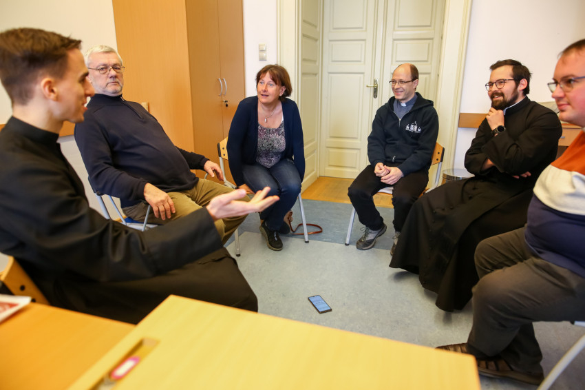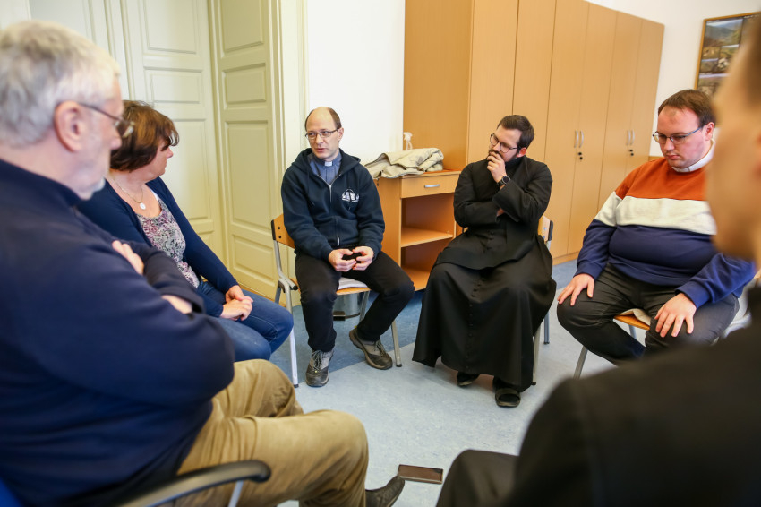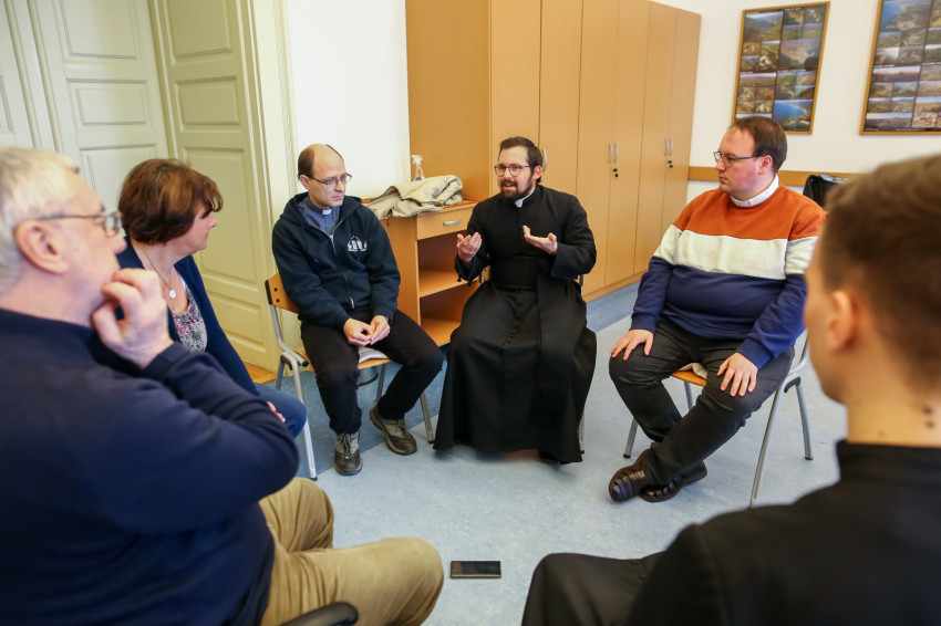 Blanckenstein Miklós pasztorális helynök a caritas socialis tantárgy oktatása során nagy hangsúlyt helyez arra, hogy megmutassa a papnövendékeknek a szociális munka gyakorlati megvalósulását. A szociális terület kiemelt helyet foglal el a papi szolgálatban, és a képzés során szerzett gyakorlati tapasztalatok hozzájárulnak egyfajta szociális érzékenység kialakulásához. A mostani szeretetszolgálati körút a szociális ellátórendszer három szintjére adott rálátást a kispapoknak. A Magyar Máltai Szeretetszolgálat intézményeket működtet és hoz létre, amelyek átvállalják az állami kötelezettségeket. Itt az intézményi megbízhatóságon és stabilitáson van a hangsúly. A Katolikus Karitász mozgalom, amely önkéntesei révén eljut az ország minden részébe és a külhoni magyarsághoz is. Működésében a hangsúly az önkéntességen van. A karitász kiválóan tudja mobilizálni a szociálisan érzékeny embereket, sokszor olyanokat is, akik nem feltétlenül tartoznak az Egyházhoz. Fontosnak tartom, hogy a pap aktív legyen ebben a szolgálatban, élére álljon a kezdeményezéseknek. A Magyar Máltai Szeretetszolgálatnál Morva Emília közép-magyarországi régióvezető, a Szent Erzsébet Karitász Központban Csorba Gábor állandó diakónus, a főegyházmegyei karitász igazgatója mutatta be a tevékenységüket. Pestszentimrén a helyi karitászcsoport vezetője, Boda Éva, illetve a kispesti Nagyboldogasszony-főplébánia csoportvezetője, Szigetvári Györgyné beszélt a kispapoknak a karitászmunka hétköznapjairól. Utunk során így két olyan szervezetet ismerhettünk meg, amelyek meghatározóak a magyarországi szociális munkában” – foglalta össze a látogatást Blanckenstein Miklós. A kispapok tapasztalatairól pedig az alábbiakban adunk képet.