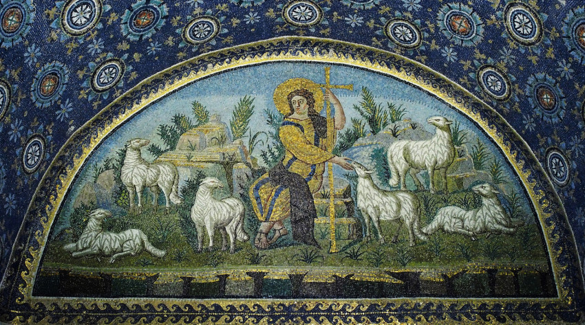 Nyájával vándorló pásztorként tereli bárányait és juhait az Úr. Kemény fából készült botjával elzavarja a nyáját támadó vadállatokat (vö. 1Sám 17,43), s a kampós bottal visszatereli az éppen elszakadni készülő vagy gondozásra szoruló egyedet. Míg a botok a biztos védelmet és a gondoskodást jelképezik, addig a jóság és az irgalom a pásztor személyes hozzáállását jelenítik meg.