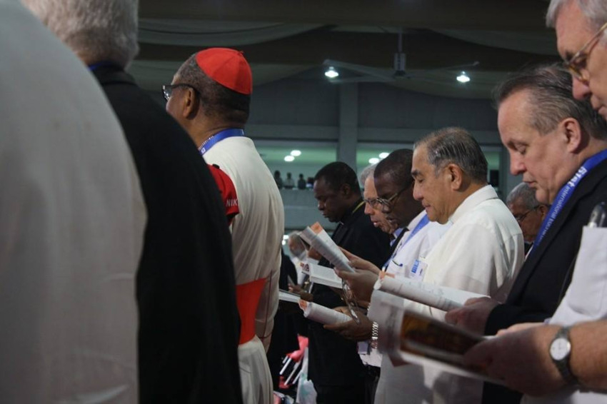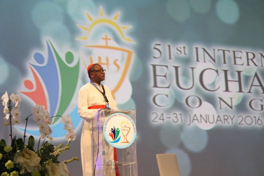 Eközben a többi küldött és résztvevő a csarnokban John Onaiyekan nigériai bíboros, abujai érsek előadását (Az Eucharisztia: párbeszéd a szenvedőkkel és a szegényekkel) hallgathatta meg. Az afrikai főpap a kontinens vallási vezetőit egyesítő tanács társelnöke, valamint a Religions for Peace (Vallások a Békéért) világtanács társmoderátora.