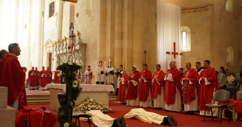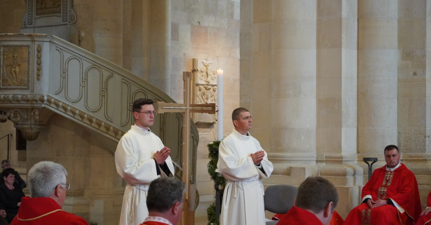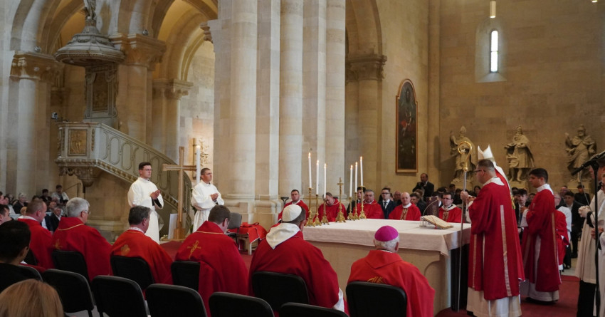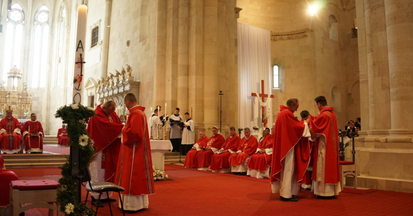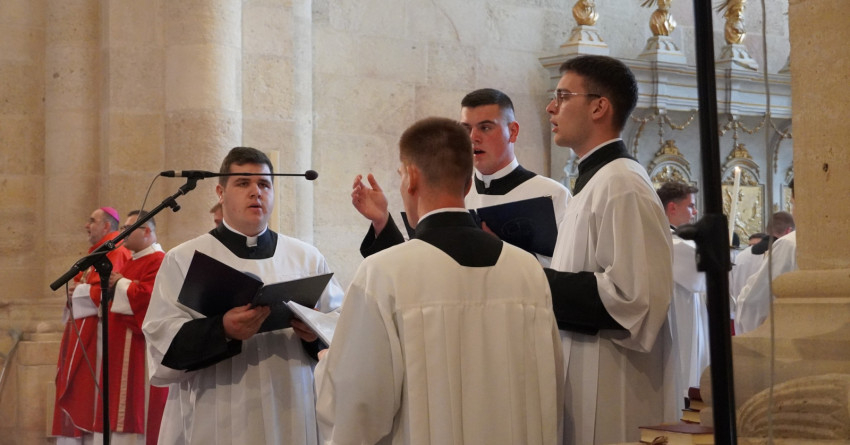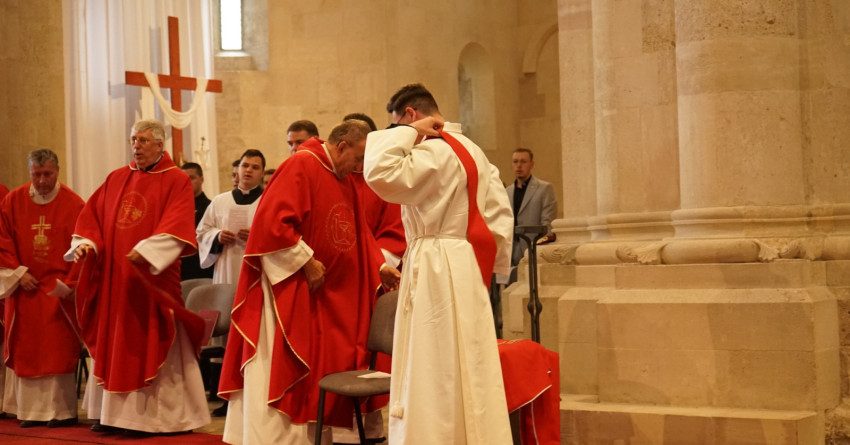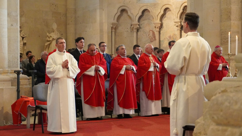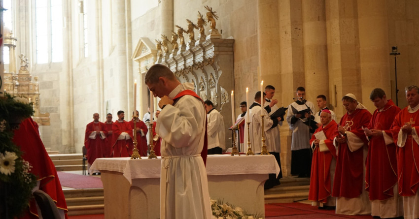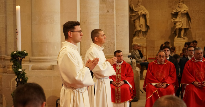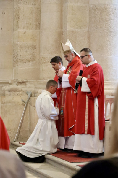 Prédikációjában Kovács Gergely érsek az Apostolok cselekedeteiből elhangzott szakaszt idézte, amely szerint „hét jó hírben álló, Lélekkel eltelt, bölcs férfit” választottak ki az apostolok, akiket kézrátétellel felszenteltek az Egyház karitatív ügyeinek intézésére. E példára hivatkozva mutatott rá a főpásztor a diakónusi szolgálat lényegére, amely ma is az Egyház szolgálatára, a közösség javára történik.