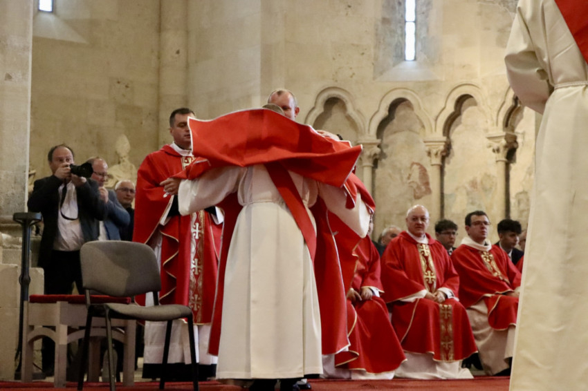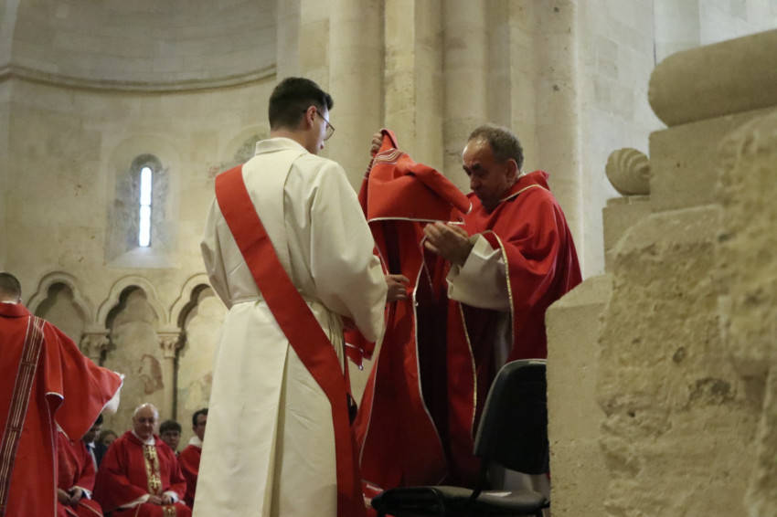A litánia elimádkozását a diakónussá szentelés két lényeges mozzanata követte: a püspök általi kézrátétel és a felszentelő ima. Az újonnan felszenteltek magukra öltötték a diakónusi liturgikus ruházatot – vagyis a bal vállon átvetett és a jobb kar alatt megkötött stólát, valamint a dalmatikát –, átvették az evangéliáriumot, majd a diakónusi rendbe való befogadással zárult a szentelés szertartása.