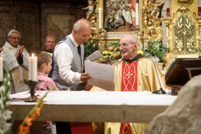 A pappá szentelésének ötvenedik évfordulóját ünneplő Kolos atya átvehette a Ferenc pápa áldásáról szóló oklevelet.