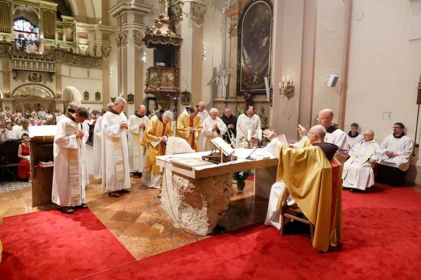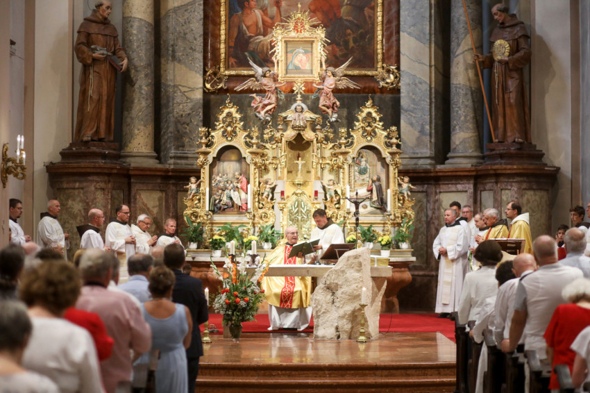 Berhidai Piusz kifejtette: a mai napon három ünnep kapcsolódik össze. Mint minden szentmisében, Jézus Krisztus megváltó kereszthalála és feltámadása az ünneplés középpontja. Megünnepeljük, hogy Isten országában új életünk van, fentről születtünk újjá. A mai napon ünnepeljük Szűz Mária mennybevételét, az isteni Megváltó, Jézus Krisztus édesanyját, aki egész földi életében szent egységben maradt Fiával, és ezért az új életben is egy vele. És hálával ünnepeljük a papság misztériumát, Kolos atya pappá szentelésének jubileumát, azt, hogy időről időre mindig vannak olyan emberek, akik az üdvösség szolgálatára szentelik magukat. Az üdvösséget szolgálják az igehirdetésben, a hitoktatásban, a szentségi élet szolgálatában, megismerhetővé és vonzóvá teszik az örök életet, amely Jézus Krisztusban feltárul. Mindhárom ünnepben ott van az új, az igaz, fentről jövő életnek a valósága.