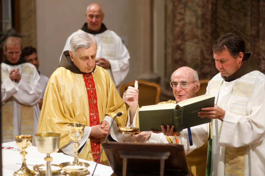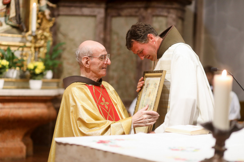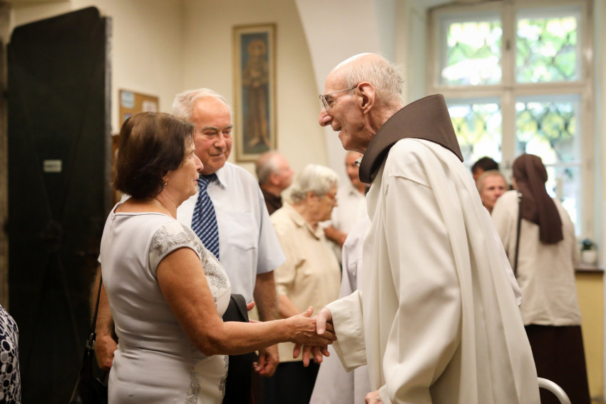 A szentmisén köszöntötték az ugyancsak ötven éve pappá szentelt Barsi Balázs ferences szerzetest is. Kolos atya végül aranymisés áldásban részesítette a megjelenteket.