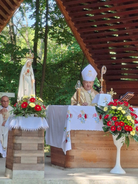 Bábel Balázs szentbeszédében elsőként a Szűzanya 1917-es megjelenését idézte fel, amikor három gyermeknek megmutatkozott Mária. Az érsek járt Fatimában, ahol megállapította, milyen csodálatosan kivirágzott, kiépült a kegyhely, ráadásul a magyaroknak is ott van az emléke a magyar keresztúttal, a Szent István-kápolnával. Bábel Balázs hangsúlyozta a Fatimai Szűzanya üzenetét: van remény; tartsunk bűnbánatot, térjünk meg és a Jóisten segítségünkre lesz. A főpásztor azt is felidézte, hogy Szent II. János Pál pápa a Fatimai Szűzanyának köszönte meg, hogy 1981-ben megmenekült az ellene elkövetett merényletkor.