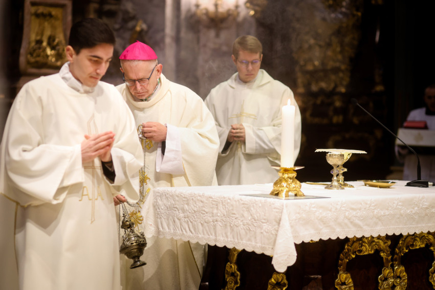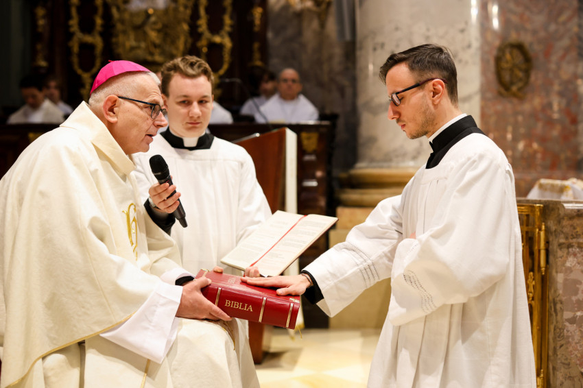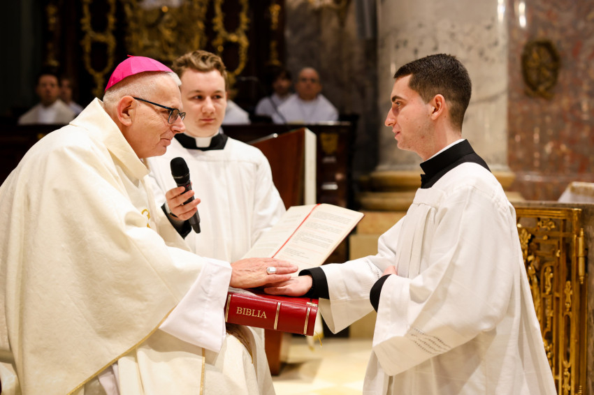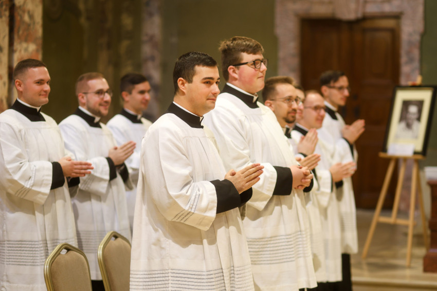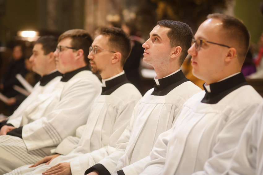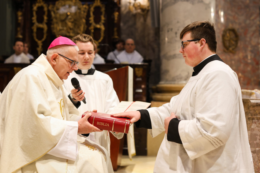 „Azzal bíz meg benneteket a lektor- és akolitusavatásban, hogy átkovászoljátok a világot. Nem az egész világot, hiszen az képtelenség, és nem is azt a világot, amelyik akárcsak pár száz méterre vagy több ezer kilométerre van tőletek, hanem azt a világot, ahol vagytok, a ti világotokat, itt a Központi Papnevelő Intézetben és elsősorban saját egyéni személyiségetek világát. A tanulmányaitokban való előrehaladásban, a lelki életben való gyarapodásban, a spirituális fejlődésben, egyre jobban és egyre erőteljesebben törekedve elérni a szív tisztaságának boldogságát. Ez egy nagyszerű küzdelem, amelyben napról napra szembesülni lehet a gyengeségekkel, hibákkal, bűnökkel, de mindezek arra tudnak figyelmeztetni, hogy az Istennek való elkötelezettség zarándokútján mennyi tennivaló van, hogy a harcos küszködés nem adható föl egy pillanatra sem” – fogalmazott a püspök.