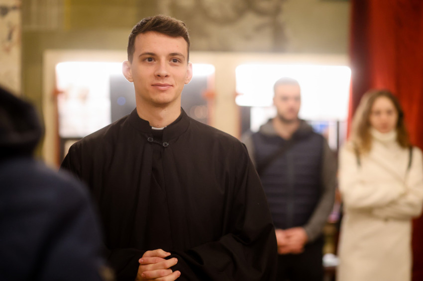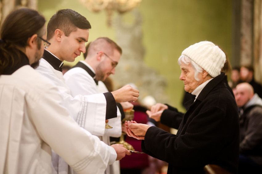A lektor- és akolitusavatással egy állomáshoz értek most az áldozópapságra való készület útján – mondta a szónok. Felidézte: a mostani lelkigyakorlaton, amelyen Martos Levente Balázs püspök atyával együtt részt vettek, egy gondolat különösen megragadta: a lelkigyakorlat vezetője elmondta, mennyire fontosnak érezte, s milyen lelkesedéssel készült arra, hogy amikor pappá szentelik, kezébe veheti az Istent, a kenyeret, s elmondhatja az utolsó vacsorán elhangzott szavakat, és a kenyér az Élet Kenyere lesz, a mi megfeszített és halottaiból föltámadott Urunk dicsőséges jelenvalóságában, aki táplálni, erősíteni és egyre inkább át szeretne bennünket formálni. „A szentmisénk a vele való találkozás és együtt étkezés ünnepélyes lakomája, mely után arra küld bennünket, hogy őáltala átformáljuk magunkat, s ezáltal a világot.” Mindazokat, akik naponta találkoznak Krisztussal, az ő életére hívja. Arra az életre, amely a Szentlélek által bele akar simulni a Mennyei Atya akaratába, a szentháromságos Egyisten életébe, amely az ingyenes és önzetlen szeretetközösség boldogsága.