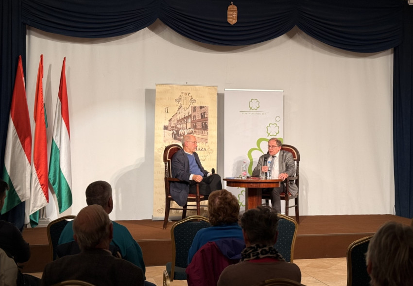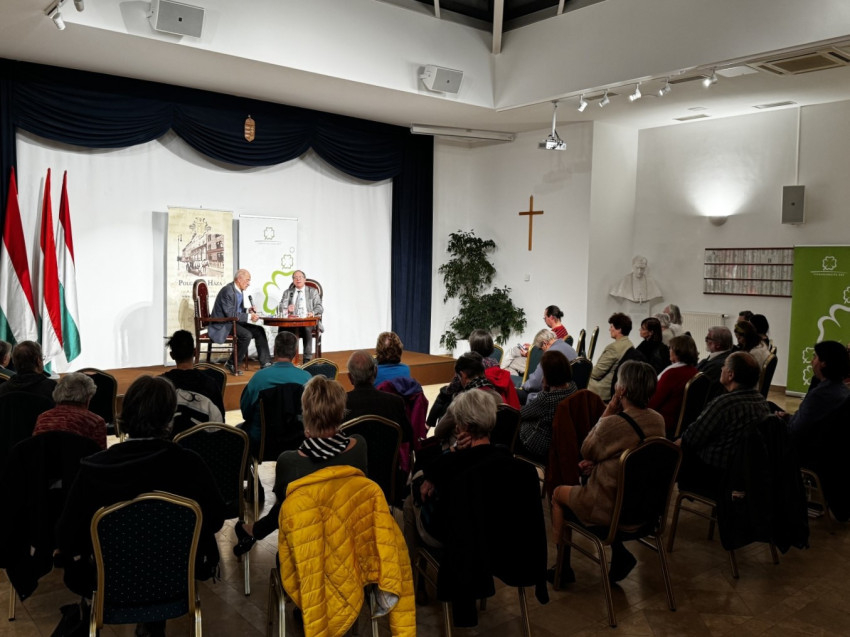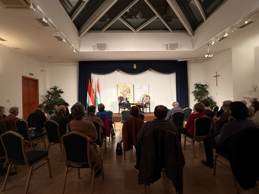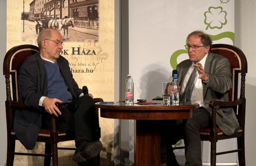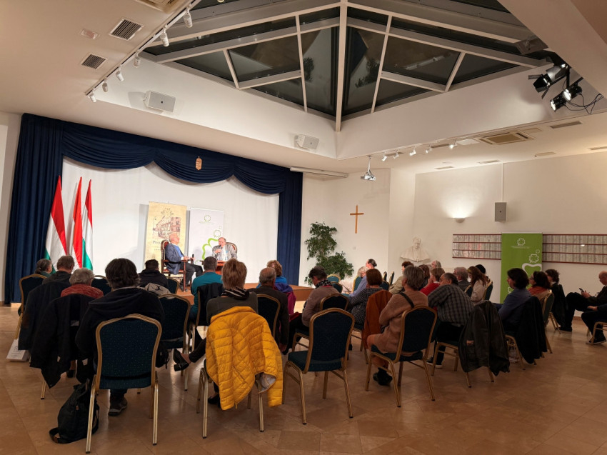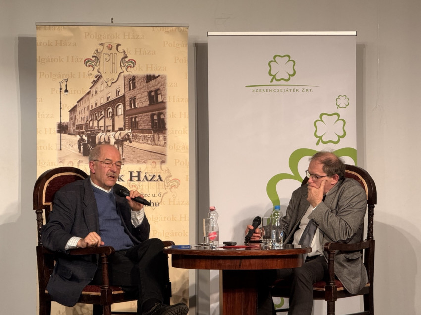 A közelmúltban Frenyó Zoltán két újabb könyve is napvilágot látott a kiadónál, Francia filozófusok magyarországi hatása és Szent Ágoston társadalom- és történelemelmélete címmel, emellett Mihelics Vid A társadalom elmélete című tanulmánykötete, utóbbinak szerkesztője volt Frenyó. Az esten a két filozófus elsősorban erről a könyvről beszélgetett.