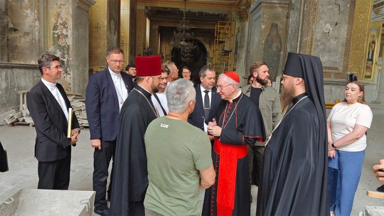 Az odesszai Nagyboldogasszony római katolikus székesegyházban tartott találkozó után Parolin bíboros meglátogatta a város ortodox székesegyházát – amely tavaly egy orosz rakétatámadás során súlyosan megrongálódott – és a Szent Mihály görögkatolikus parókiát is.