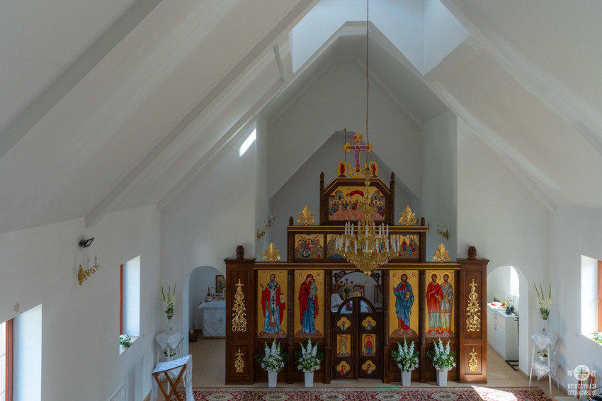 Az ikonosztázion faállványzatát Sarkadi Sándor ácsmester, Gergely József fafaragó mester készítette, az ikonokat Makláry Teréz festette meg.