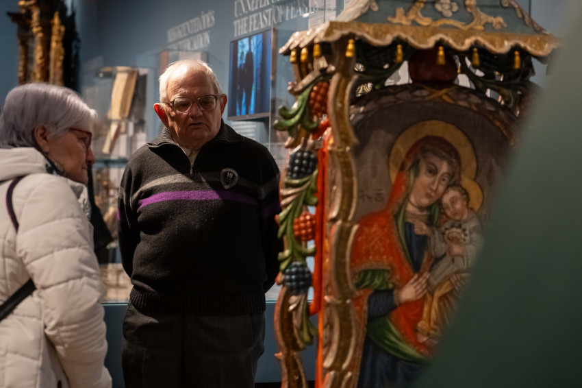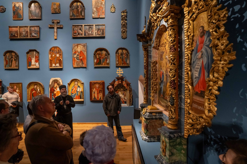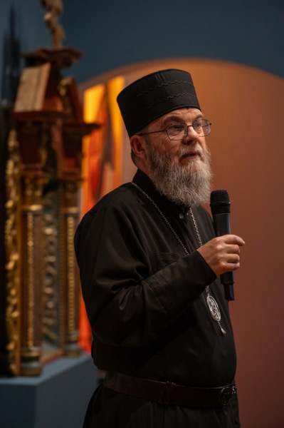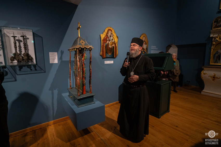 Az ikonok megszólítanak című tárlatvezetésén Orosz Atanáz püspök többek között arról beszélt az Ablak az örökkévalóságra című állandó tárlat kiállítóterében, hogy életében milyen szerepet töltenek be az ikonok, hogyan szólítják meg őt.