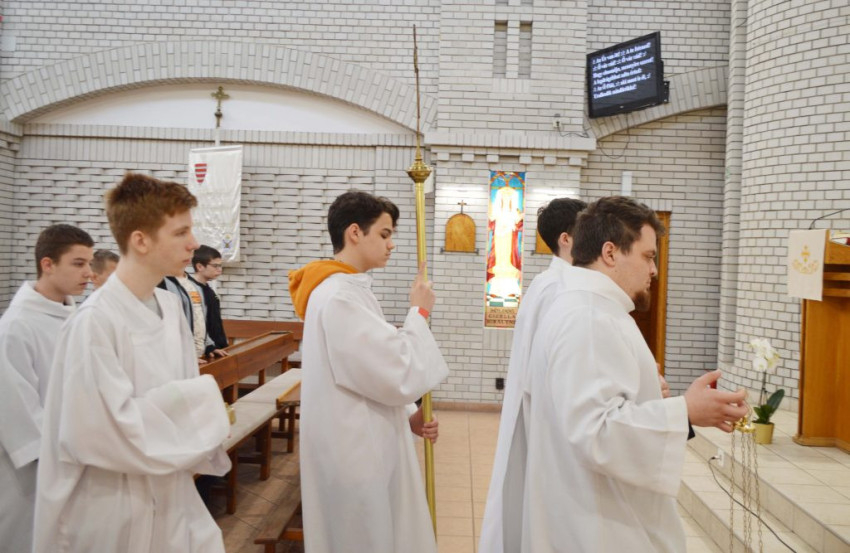 A ministránsokat és a lelkipásztorokat Nagy Csaba iskolalelkész, plébániai kormányzó, Nagy Éva tanárnő és a „szentimrés” gyerekek fogadták.