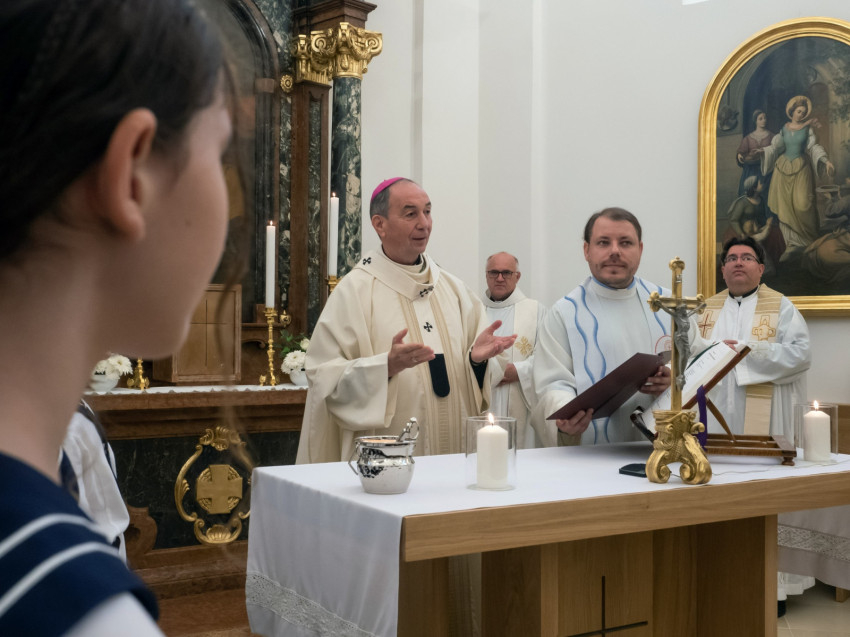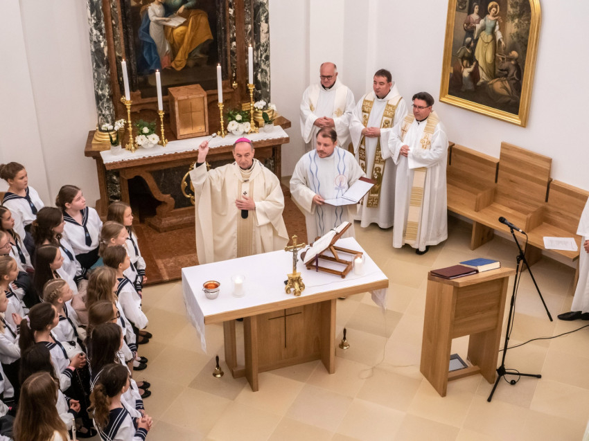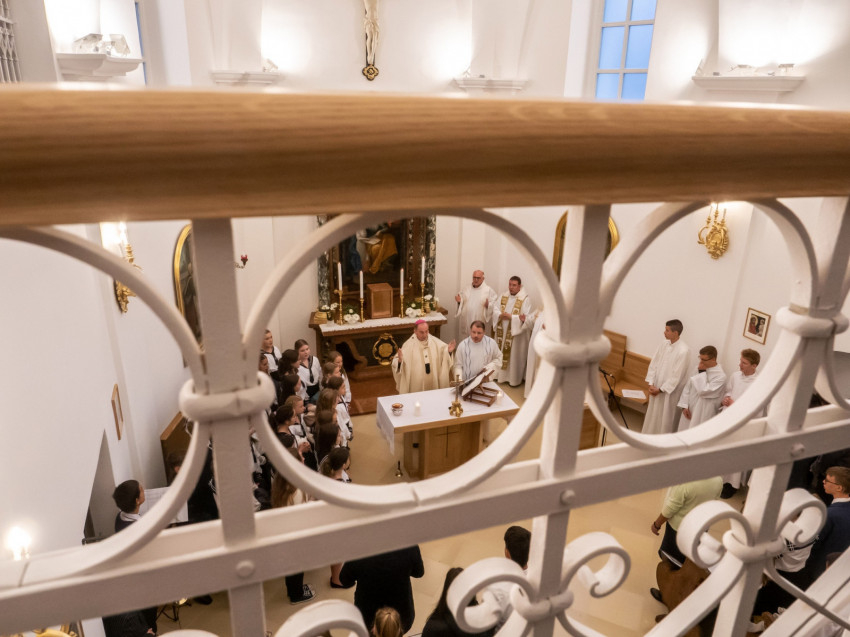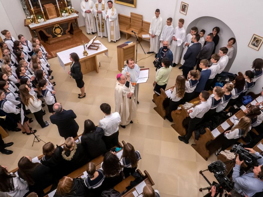 Udvardy György érsek a megáldás előtt köszönetet mondott mindazoknak, akik munkájukkal széppé tették a kápolnát, ami az iskola kápolnája, ugyanakkor alkalmas arra is, hogy a hívek, akik a környéken laknak, vagy ide szeretnek járni, ismét itt vegyenek részt szentmisén.