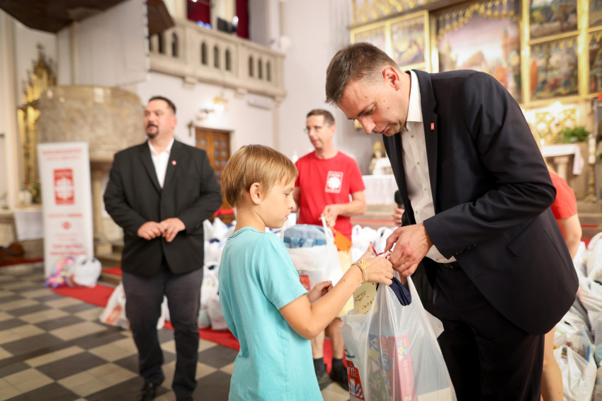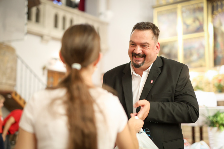Zagyva Richárd kifejezte örömét, hogy templomban rendezik meg idén az első tanszerátadó eseményt. Mint mondta, a július végén elindított program egy nagy országos összefogás, hogy minél több gyerekhez jussanak el iskolatáskák és tanszercsomagok.