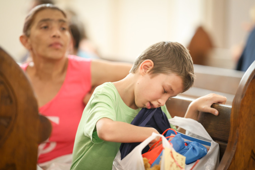 Marik Gergely, Kálmán Antal és a Szent Erzsébet Karitászközpont dolgozói ez után név szerint hívták ki őket, hiszen személyre szabott zsákokat készítettek számukra. A száz csomagból alig maradt, hiszen a nagy meleg ellenére szinte minden meghívott eljött az ünnepségre. A gyerekek között voltak, akik Venezuelából vagy Szíriából származtak. Egy fiú öltönybe bújva tisztelte meg az eseményt, és Laudetur Jesus Christust mondva köszönt.
