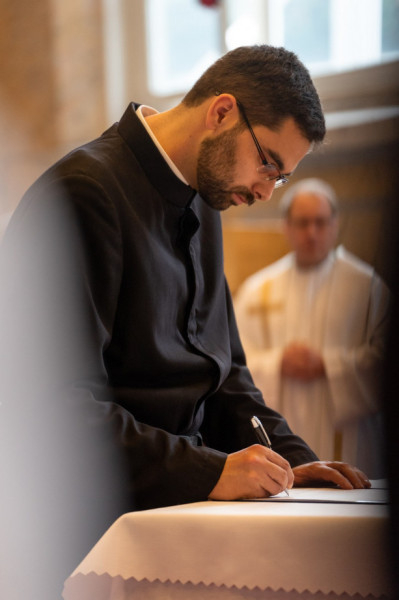 „Az elmúlt évek alatt a most fogadalmat tevő két szerzetes sokat változott, fejlődött, mégis ugyanaz maradt. Megtanultak szükség szerint segítséget kérni, ráhagyatkozni kísérőikre, elöljáróikra, mindezt szeretettel és bizalommal, megélve az Isten által vezetett folyamatokat, így kerülve egyre közelebb hozzá.