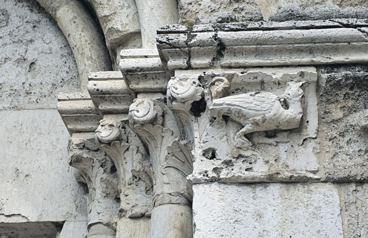 Lássuk tehát az 1995 óta méltán Europa Nostra-díjas szent hajlék néhány, a nagyközönség számára az itteni Mária megkoronázása-, Szent György- és Szent Miklós-freskóknál jóval ismeretlenebb kincseit. Számomra, talán az elmúlt másfél esztendő sokunk lelkében nyomot hagyó sebhelyei miatt, az első igazán megszólító erejű leckét azok a szürke mészkőből és vörös homokkőből lévő építőkövek adták, amelyek, anyaguk függvényében, halványabb és erőteljesebb szablyanyomokat őriznek a templom körül zajló egykori csatározások emlékére.