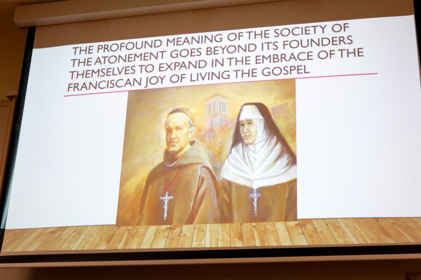 James Puglisi előadásában elmondta, az Engesztelő Társaság idén ünnepli alapításának 125. évfordulóját, és „látható jele Isten Szolgája, Paul Wattson atya és Lurana White anya álmának”. Mint mondta, „a Szentlélek mindig gyümölcsöző jelenlétének köszönhetően a kezdetektől tudta, hogyan vezesse a két alapítót a siker felé, amely út nem mentes az akadályoktól és nehézségektől, mégis termékeny választ ad az episzkopális vallási közösség és a római egyház közötti megbékélés kihívásaira. Az Engesztelés Társaságának mély jelentése túlmutat az alapítókon, és az evangélium megélésének ferences örömét terjeszti a széttöredezett világban” – mondta az előadó.