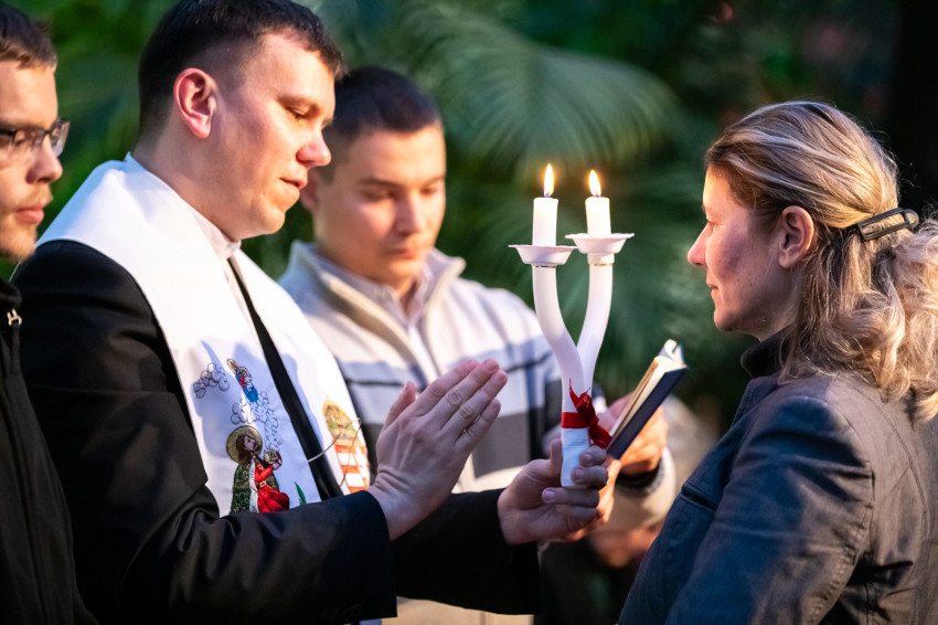Molnár Tamás atyával kölcsönösen megáldották egymást az ilyenkor használatos meggyújtott szentelt gyertyákkal, amit Az Úrral való egység imájának közös eléneklése előzött meg. A pozsonyi lelkipásztor külön megköszönte Fábry Kornél püspöknek, hogy megzenésítette ezt az egyre inkább terjedő fontos fohászt, a Szeretetláng Mozgalom egységimáját.