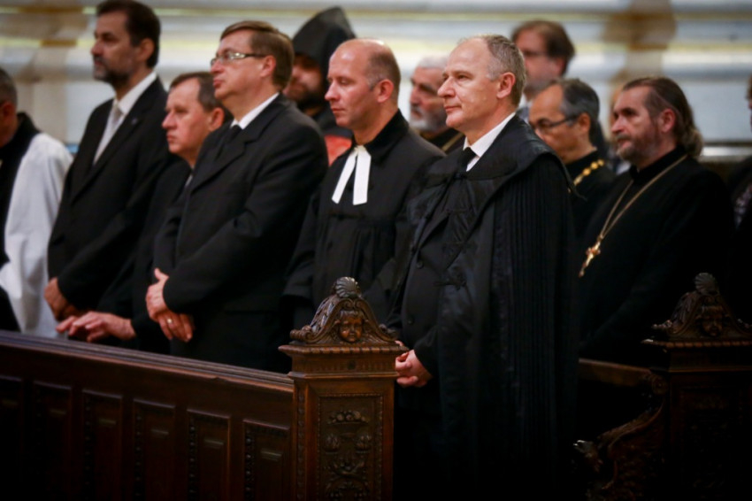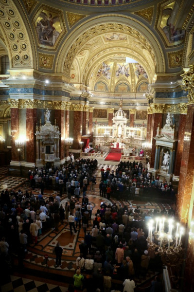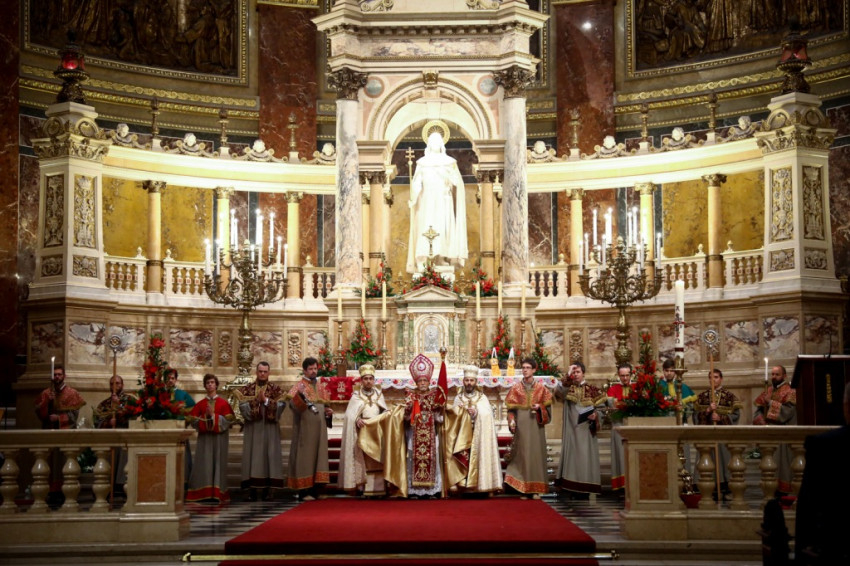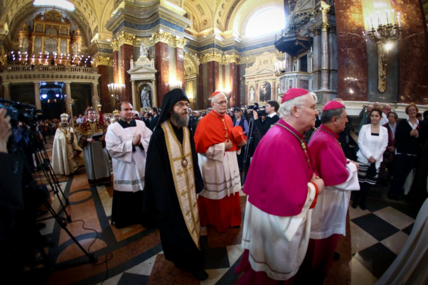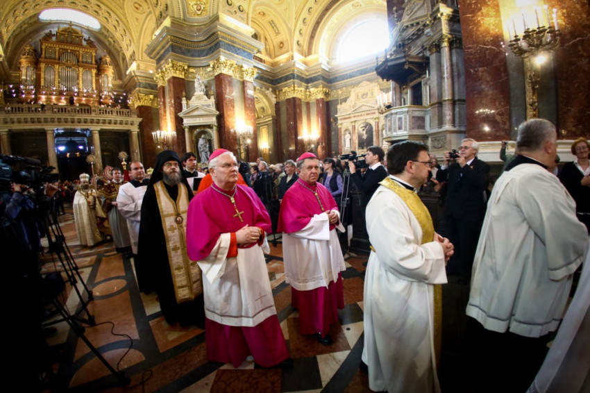A Szent István-bazilikában bemutatott liturgián Erdő Péter bíboros mellett részt vettek a Magyar Katolikus Püspöki Konferencia jelen lévő tagjai, és az Esztergom-Budapesti Főegyházmegye papságának képviselői. Az ünnepi liturgián jelen volt Bogárdi Szabó István püspök, a Magyarországi Református Egyház zsinatának lelkészi elnöke, valamint a meghívott testvéregyházak vezetői, Harrach Péter a KDNP frakcióvezetője, Bagdy Gábor főpolgármester-helyettes és a diplomáciai testület tagjai.