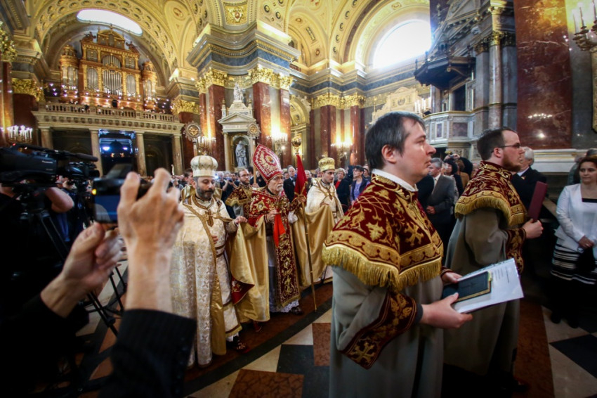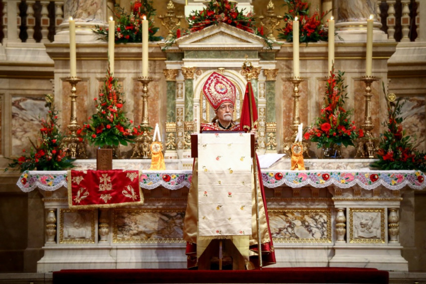 A második dolog, amelyet Szent Lukács felénk közvetít, az, hogy a Szentlélek kitárja az egyház kapuit minden nemzet előtt – folytatta Nerszész Péter. – „Így vált lehetővé, hogy bármely népből aki csak hallotta az apostolok beszédét és hitt, az Egyház tagjává vált. Így született meg a Szent Egyház: előbb Júdeában, majd a Közel-Keleten, majd Örményországban, amely az első néppé vált, amely a kereszténységet államvallássá tette. És azután Magyarországon és más országokban, amelyek nagyszámú szentet adtak, sok-sok ezer hívőt, valamint vértanúkat és hitvallókat a századok folyamán egészen a mai napig.”