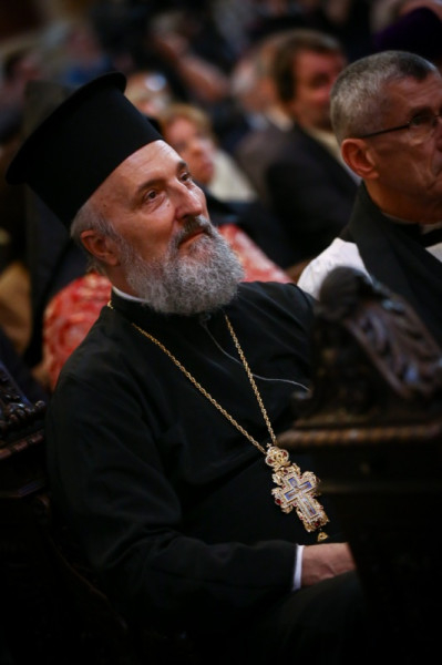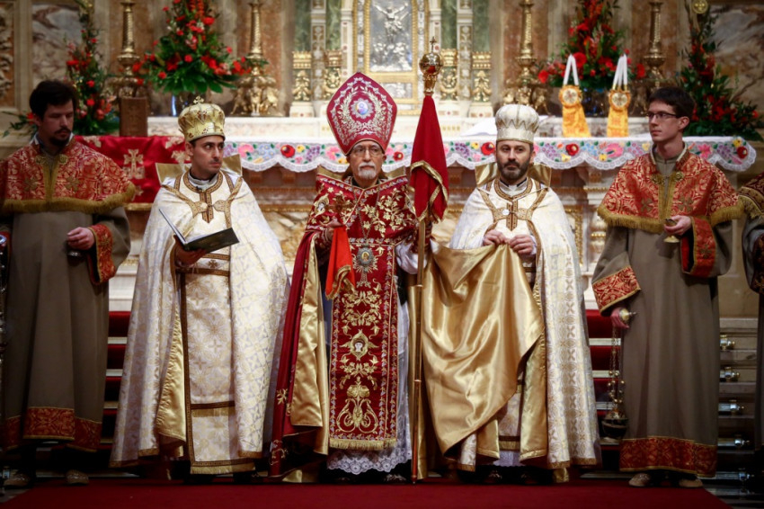 A pátriárkai szentmise kezdete előtt Erdő Péter köszöntötte Nerszész Bedroszt és a jelenlévőket magyar és olasz nyelven: