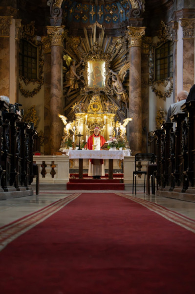 A kármelita templomban Spányi Antal püspök idős paptestvéreivel mutatott be koncelebrált szentmisét a nap csúcspontjaként.