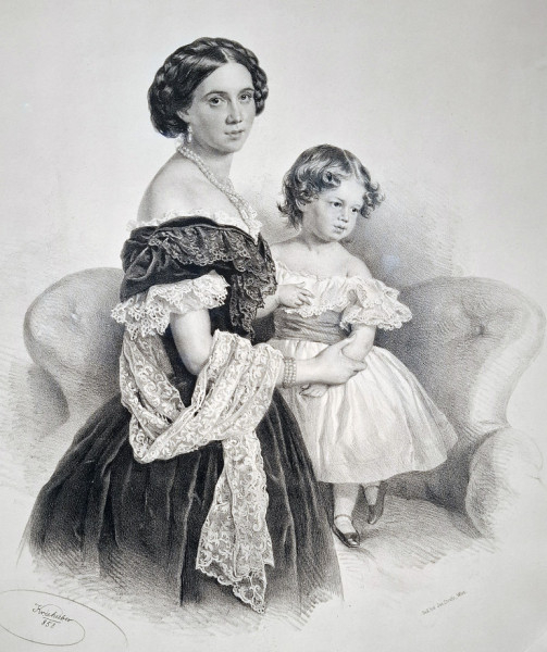 A már említett Josef Kriehuber leheletfinoman megfestett arcképe Karoline Lobkowitz hercegnőt ábrázolja 1836-ból. Karoline az édesanyja, Erdődy Mária Borbála révén magyar származású, korának feltűnő szépségű hölgye volt. A csehországi Plzeňben élt, s 1834-ben kötött házasságot Johann Nepomuk von Lobkowitz herceggel; négy gyermekük született.