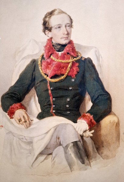 A 19. század biedermeier korszakának egyik legsikeresebb festője, rajzolója Josef Kriehuber (1800–1876) volt. Pályája során több ezer portrélitográfiát készített. A fotográfia 1840 körüli feltűnése után művészetének súlypontja az akvarellre helyeződött át, amelyben minden részletre kiterjedő, bravúros finomságú rajzstílusát festői hatásokkal és finom színvilággal gazdagítva bontakoztatta ki. Az egyik akvarelljén, amely Victorin Leopold Karl von Windischgraetz herceget ábrázolja, egy igazán „snájdig” fiatalembert örökített meg a művész. Ruhája katonát sejtet, nyakában piros prémes gallér díszeleg, ostorszíja szintén a nyaka körül tekereg. Arcáról csak úgy sugárzik az öntudat, a magabiztosság.