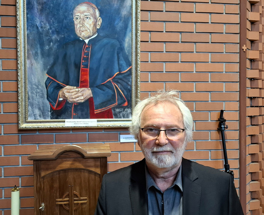 Az oltártól balra rögtön feltűnik Mindszenty József bíboros, hercegprímás arcképe A kardinális címmel. A festmény az esztergomi Keresztény Múzeum tulajdona. Nagyon jó ez a kép, a bíboros jellegzetes mozdulata, arckifejezése, a színek, a ruházat, a megvilágítás mind remekül sikerült. A kezek ábrázolása is kiváló, állapítottuk meg Gájer Lászlóval a megnyitó után. Nem könnyű olyan embert festeni vagy mintázni, akit csak fényképről ismer az alkotó, mert hiányzik neki a személyes találkozás, a közelség, a párbeszéd a modellel. Nem véletlen, hogy a századfordulón László Fülöp, a kiváló portréfestő kétszeri ülés során kilenc órát is eltöltött főúri modelljeivel. László egyik remeke az a mostanában a figyelem homlokterébe került portré is, ami a kilencvenéves XIII. Leó pápát ábrázolja. A világhírű magyar mester 1900 márciusában készítette a képet a Vatikánban, öt ülés után.