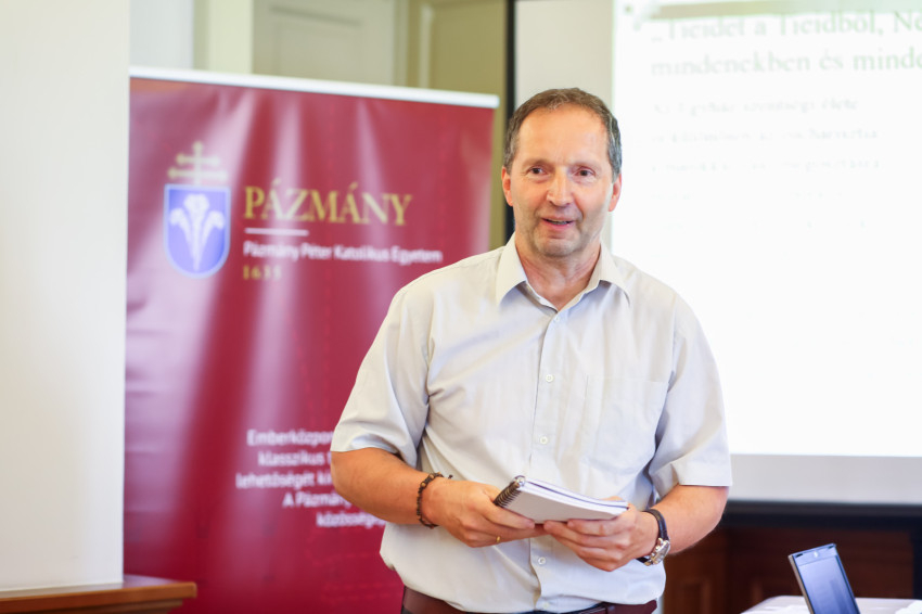 Harsányi Ottó filozófia- és teológiatörténeti előadásában kitért a Szentháromságnak a család analógiájára épülő újabb szemléletére is az Amoris laetitia pápai buzdításból és a Gaudium et spes zsinati dokumentum 24. fejezetéből kiindulva.