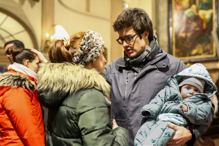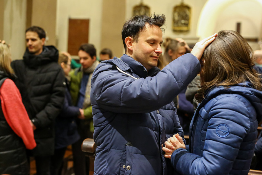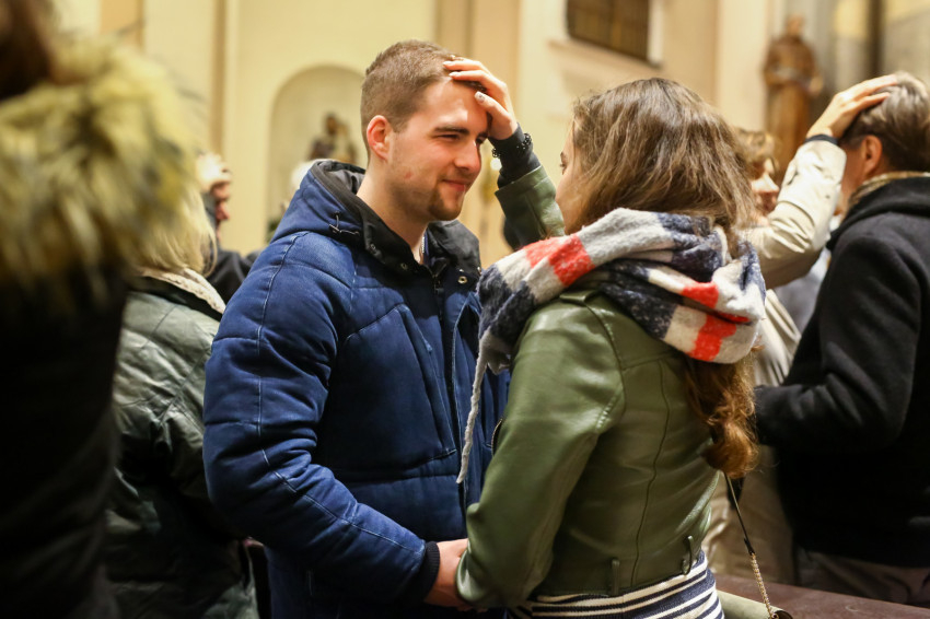 A Családok Jézusban Közösség kezdeményezte szentmisén Lendvai Zalán OFM, a ferences templom plébánosa köszöntötte a padokat megtöltő sokaságot. Köszöntőjében Szent Bálint püspökre tekintett, aki a hagyomány szerint a szerelmesek védőszentje.