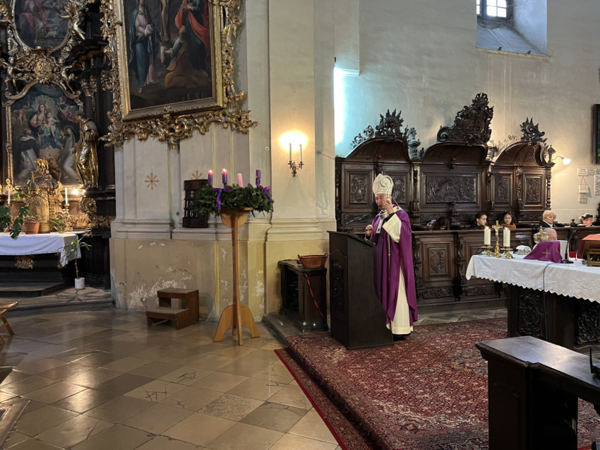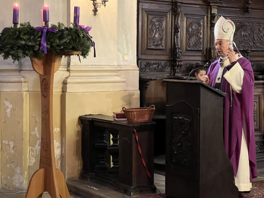 Homíliájában a főpásztor elmondta: örömmel érkezett, mert amikor együtt tudnak ünnepelni a hívek, a főpásztor, a lelkipásztorok, akkor az az Egyházat jelenti. Az Egyházat, aki várakozik, készül Jézus Krisztus születésének megünneplésére, a liturgiában kifejezi várakozását. Az Egyház a családokban, az egyének szívében születik meg. Közös ünneplésünk azt kívánja elősegíteni, hogy erősödjünk hitünkben, érezzük át a nagy ajándékot, amelynek ünneplésére készülünk.
