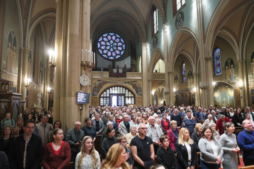 már legyen bekészítve a gyújtós, hogy legyen mit lángra gyújtani benne, legyen ott a vágy Istenre, aki maga a szeretet. Hiszem, hogy ma este azért vagyunk itt együtt, hogy utána lángoló szívvel tudjunk hazamenni, és mindenkinek tanúságot tenni, mindarról, amit láttunk és hallottunk. Ámen!” – zárta szentbeszédét Fábry Kornél püspök.