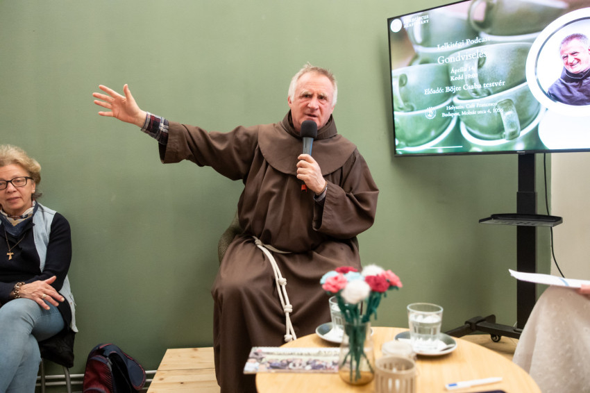 Ha van gondviselés, miért van ennyi szörnyűség a világban? – hangzott a következő kérdés. Böjte Csaba rámutatott: a szenvedésben nincs érték, nem vagyunk fakírok, nem a szenvedés a cél. Szabad akaratunk van, különben bábok lennénk. Eljátszott a gondolattal, mi lett volna, ha Jézus megmenti Jeruzsálemet a közelgő pusztulástól, ha nem lett volna Mohács, Trianon, ukrajnai háború. Isten biztosan azt szeretné, hogy a gyerekei szeretetben és békében éljenek, de nem fordít hátat nekünk akkor sem, ha mindezeket elkövettük. Mintha az egész szenvedéstörténet arról szólna, hogy provokáljuk Istent, szeret-e akkor is, ha megostorozzuk, megöljük, rosszat mondunk róla. Ő nem kéri számon Pétert sem, hanem azt mondja neki: „Legeltesd juhaimat!” Gyönyörű ez a végtelen bizalom! Ne fogjuk a Jóistenre az emberi kapzsiságot!