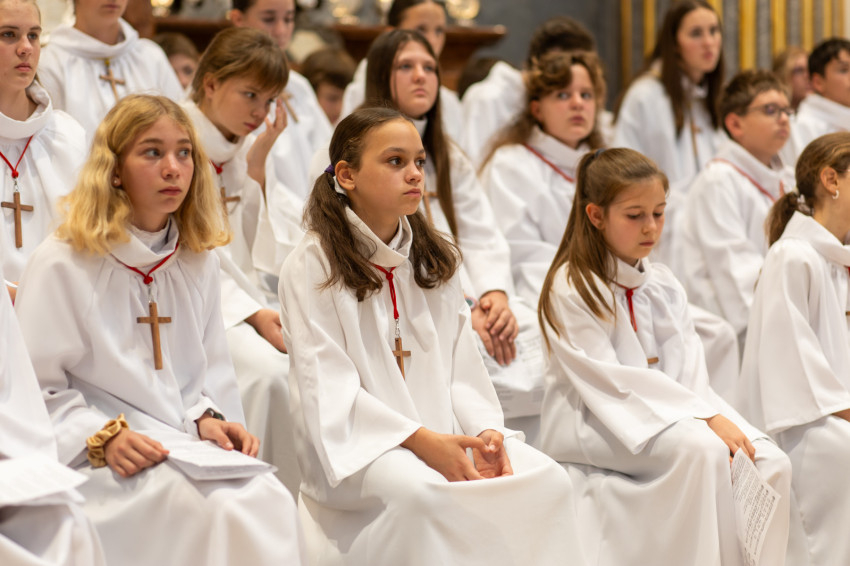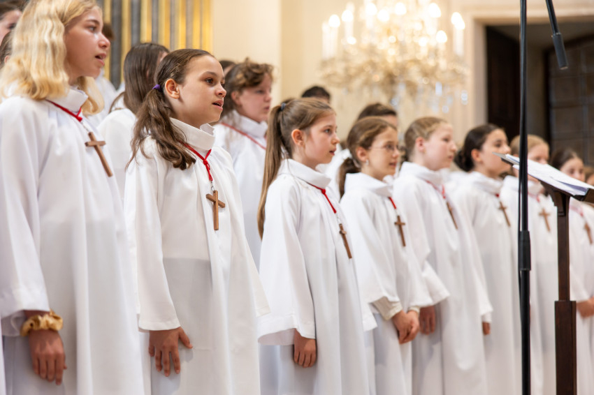 A szombati szentmise zenei szolgálatát a Váci Székesegyházi Kórusiskola látta el, Acsainé Dávid Ágnes karnagy vezényletével.