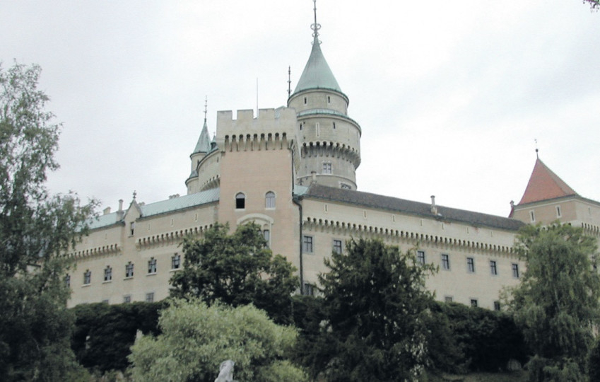 (Nyitráról a mi generációnknak természetesen gyerekkorunk egyik nagy mozikedvence, a Rákóczi hadnagya jut először az eszébe.) A vár mai formája engem a sokkal kisebb, de hangulatában rokon nádasdladányi kastélyra emlékeztet, aligha véletlenül, hiszen a két főúri famíliát rokoni szálak fűzték egymáshoz. Az erősen historizáló, pompás épület Hubert József budapesti építőművész tervei alapján készült utolsó tulajdonosa, a megszállott műgyűjtő és zárkózott, emberkerülő természete ellenére tudatos művészetpártoló Pálffy János megrendelésére. Bajmóc (mai nevén Bojnice) az ő családjának egyik fő birtokközpontja volt.