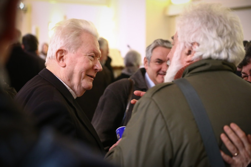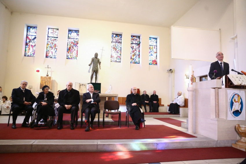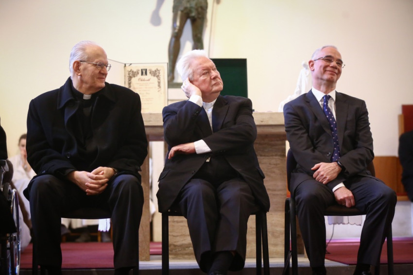 Erdő Péter köszöntőjében felidézte fiatal papi éveit: akkoriban suttogva beszéltünk arról, hogy valami ismét történt „Beton atya” körül. Ő töretlenül foglalkozott a fiatalokkal, nem törődött vele, örül-e ennek a hatóság. Láttuk, hogy újra és újra áthelyezték. Bennünk pedig az maradt meg, amire ő törekszik, amiért sok mindent vállalni kell: a hit továbbadása olyannyira fontos feladat, hogy érdekében minden kellemtelenségen, megpróbáltatáson át lehet és át is kell lépni.