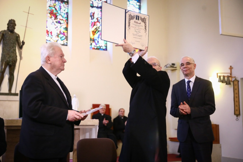 A díjátadáson közreműködött a Felső-krisztinavárosi Plébánia Énekkara Tőkés Tünde karnagy vezetésével. Farkas János piarista diák Gyurkovics Tibor versével köszöntötte az ünnepeltet.