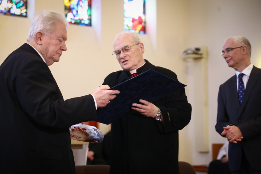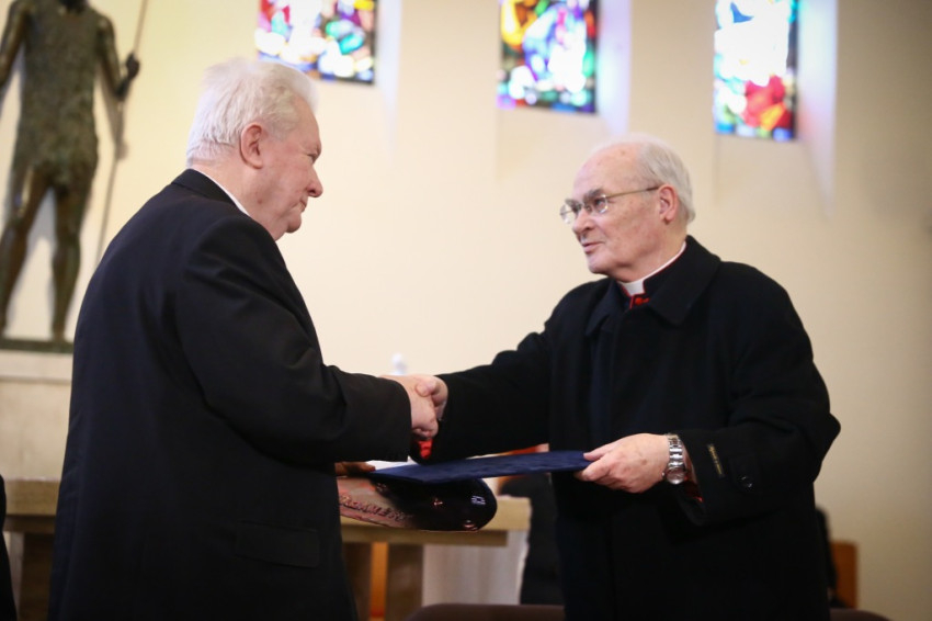 Balás Béla, aki rendületlen hite, kitartása és elvhűsége miatt kapta a „Beton atya” nevet, valóban a hit pajzsa volt és marad – zárta laudációját a professzor.