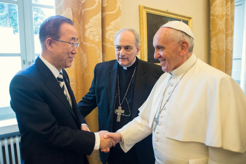 Ban Ki Mun azért tartózkodott a Vatikánban, hogy megnyissa azt a nemzetközi környezetvédelmi konferenciát, amelyet Védeni a Földet, az emberi méltóságot. A klímaváltozás és a fenntartható fejlődés erkölcsi dimenziói címmel rendezett a Pápai Tudományos Akadémia.