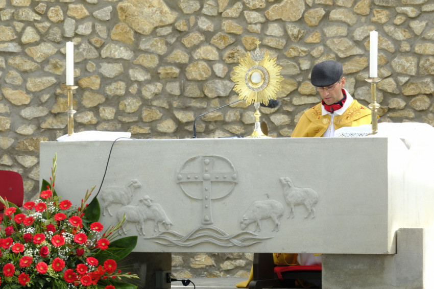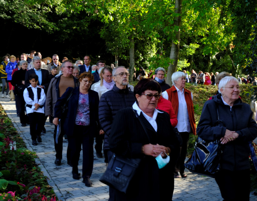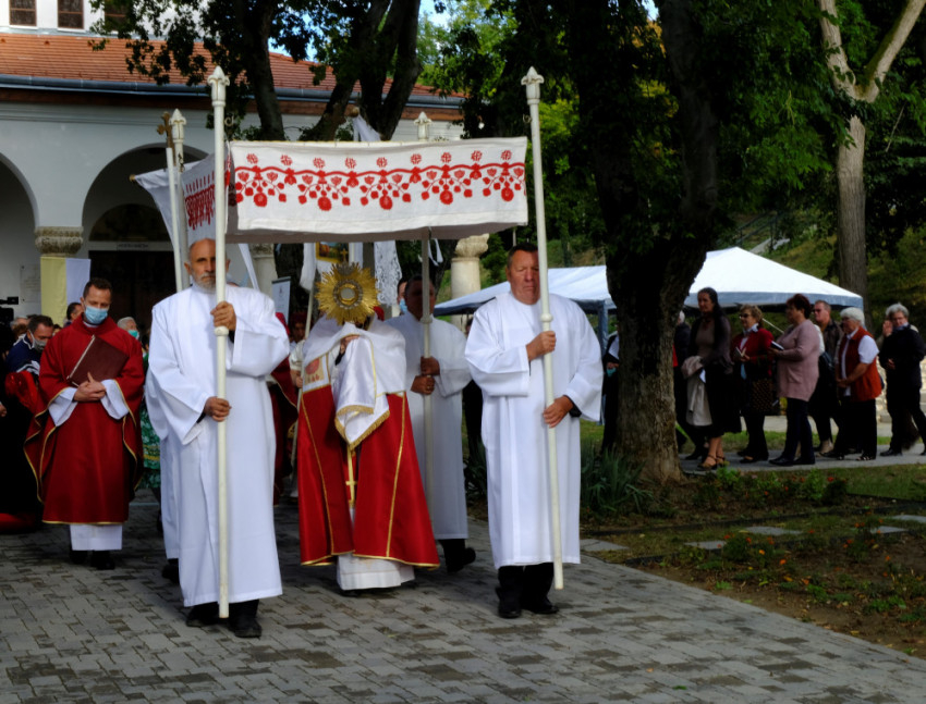 Az ünnep délben szentségimádással kezdődött, amelyet Nyúl Viktor pasztorális helynök vezetett a szabadtéri oltárnál, majd a fájdalmas rózsafüzér elimádkozása következett Kürtösi Krisztián plébános közreműködésével.